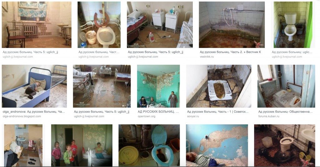 Вечером жители Тутаева спешат к телевизорам смотреть сюжеты о том, как разваливается и замерзает Украина, как страдает под игом Киева угнетенный Донбасс. И пример этого города не уникален. В гугле можно найти сотни фотографий адских российских больниц. Так по всей России.