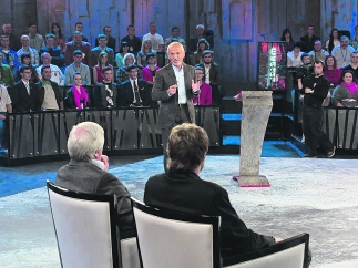 Яблоко раздора — высказывания в прямом эфире российского журналиста Максима Шевченко, приглашенного самим Шустером. Гость, включившись из Москвы, сравнил позицию современного Киева с Ельциным образца 1994–1995 годов, вынужденным бросить войска на Чечню. Особый резонанс приобрели его высказывания о «братоубийственной войне» и «обстрелах украинской армией». Программу транслировали два канала — «24 канал» и «112», и обе попали в объектив Нацсовета по ТВ, органа, регулирующего правила игры в телепространстве.