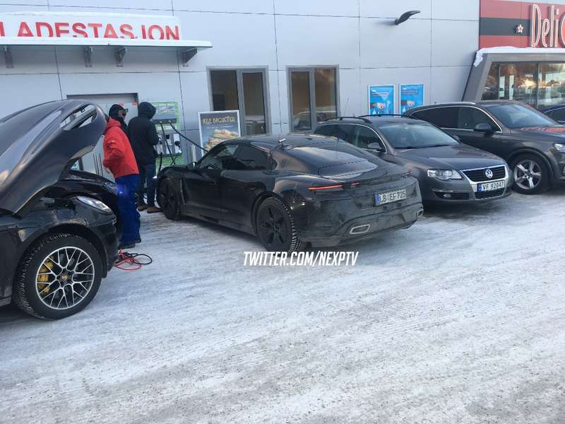 На одном снимке два прототипа Taycan, похоже, были остановлены на дороге, и у одного из автомобилей был открыт капот. Замеченные автомобили были без логотипов и шильдиков, а также со специальными накладками, имитирующими выхлопные трубы.