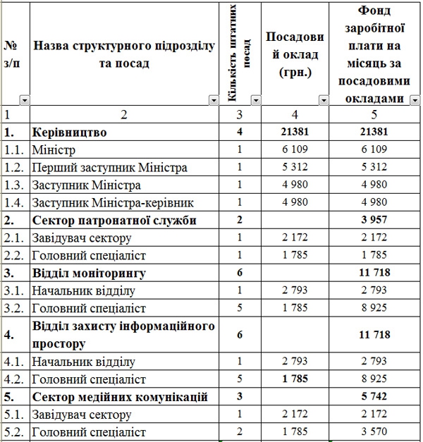 2. Штатний розклад з окладами додається до цього листа. Просимо врахувати, що із зарплат будуть вираховуватися податки та збори, а також те, що частина посад (режимно-секретний обєкт, антикорупційна посада) - це вимоги законодавста.