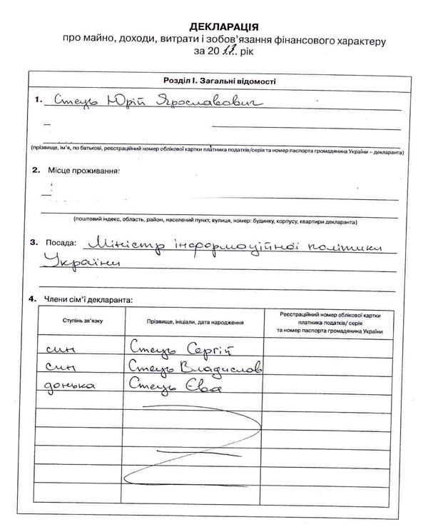 Если кому-то интересно, сколько заработал Юрий Стець  в 2013 году и сколько он получает в роли министра информации – пожалуйста: его декларация о доходах за 2013 год (декларация за 2014 году еще не подана в налоговую) и штатное расписание с окладами министра и его помощников размещено на сайте «Доступ до правди», вместе с пояснительным письмом относительно предоставленных документов.