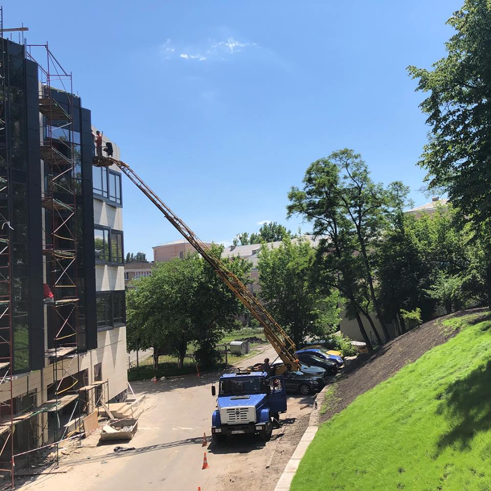 15.08.2018 года был проведен осмотр объекта строительства, в ходе которого было установлено, что на здании частично завершена отделка фасада, окна вставлены на 2-4 этажах, двери и гаражные ворота в здании не установлены, сквозь открытые проемы видно, что внутренняя отделка первого этажа отсутствует.