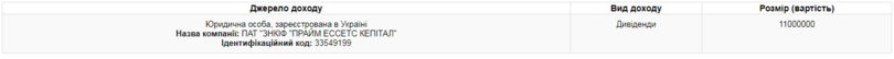 Согласно представленным изменениям, 1 и 15 февраля Порошенко задекларировал около 90 млн грн дивидендов от "Прайм Эссетс Кэпитал".