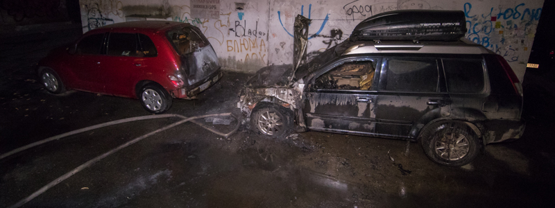 Два автомобиля сгорели в Киеве во дворе жилого дома на улице Ярославская в ночь на 18 февраля.