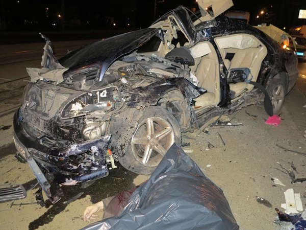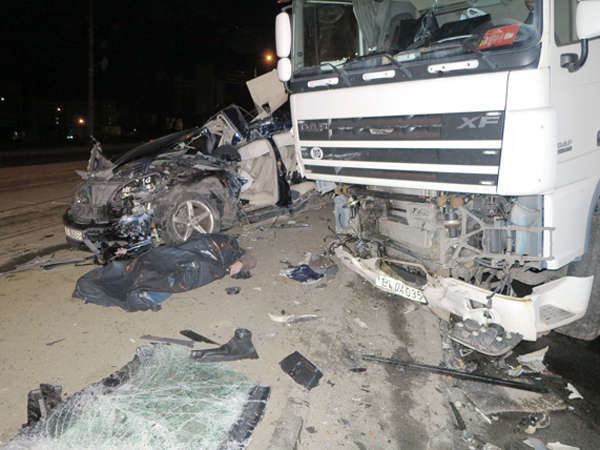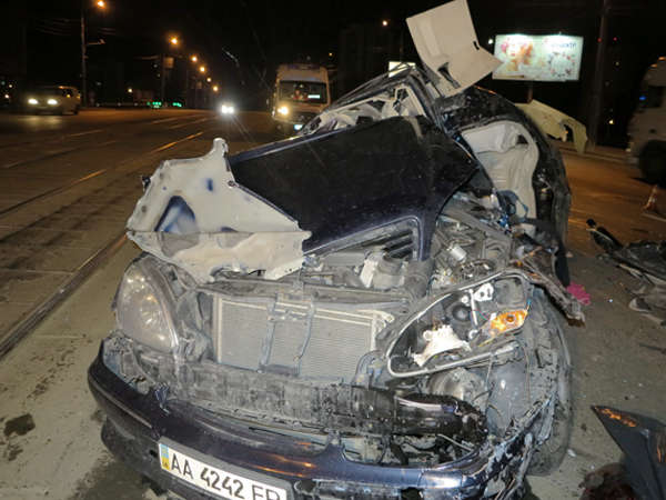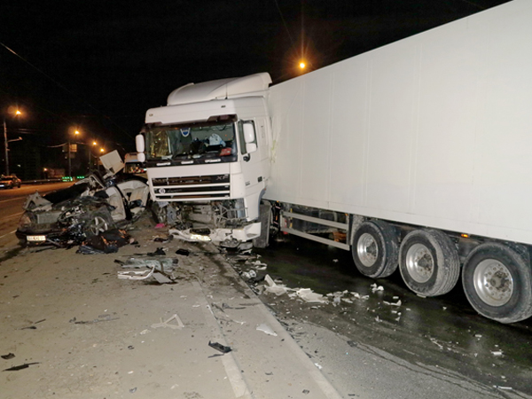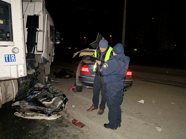 В ночь на пятницу на перекрестке улиц Братиславская и Малышко произошло столкновение престижного Mercedes-Benz премиум-класса с фурой.