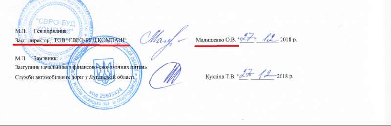 После того, как был подписан контракт с заказчиком, журналисты «Наших грошей» выяснили, что Служба автодорог заказала «Евро-Буд Компани» содержание и ремонт дорожного полотна как на подконтрольной украинским властям территории, так и на захваченной боевиками «ЛНР» земле.
