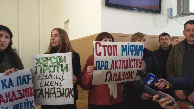 У міськраді Херсона відбувається мітинг проти перейменування вулиці на честь Катерини Гандзюк pic.twitter.com/JLBXlNSuq1
