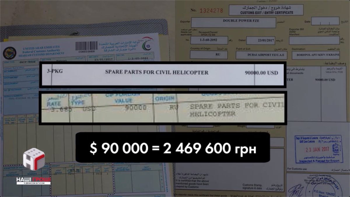 Отметим, что согласно данным журналистов за одни только высотомеры Концерн заплатил более 567 тысяч долларов. Также в расследовании журналисты показали таможенные декларации из ОАЭ, через которые ввозили в Украину данные высотомеры. В указанных документах указана стоимость приборов — 90 000 долларов США.