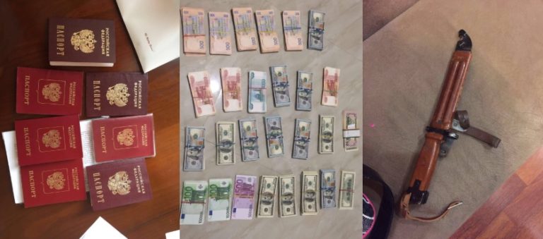 У фигурантов дела изъяли большое количество внутренних и международных паспортов разных стран, поддельные виды на жительство, служебные удостоверения, оружие, а также денежные средства в сумме более 230 тыс. гривен, 134 тыс долларов США, более 14 тыс. евро и 1,4 млн российских рублей.