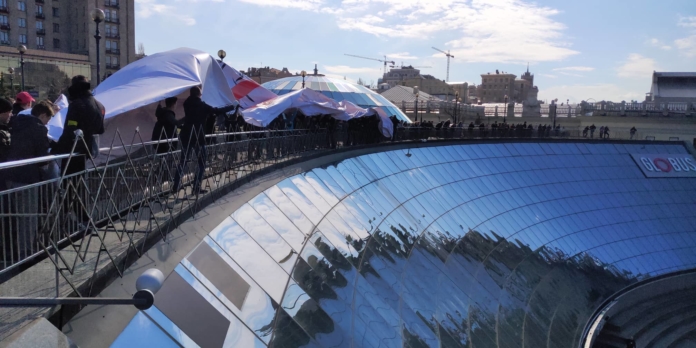 Його вивісили на фасаді торговельного центру “Глобус” представники “Національного корпусу.