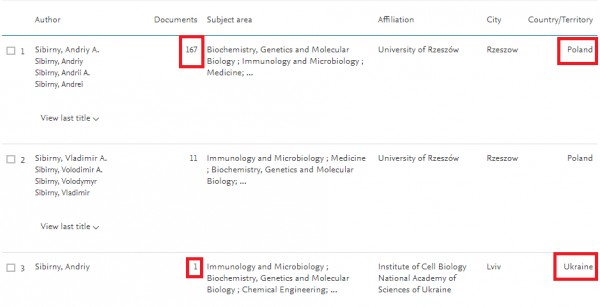 Парадокс - в наукометрической базе Scopus директор украинского научного института Андрей Сибирный больше известен, как польский ученый: под эгидой Жешувского университета он опубликовал 167 научных работ, а как ученый Института биологии клетки - всего одну научную статью.