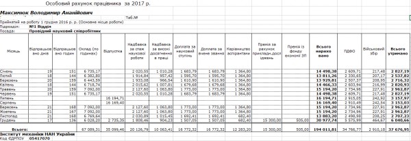 Так Максимюк в конце года получил премию 15 300 гривен из бюджета на проведение прикладных исследований.