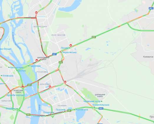 На левом берегу пробки не зафиксированы. Но движение затруднено на Южном мосту, Дарницком мосту, мосту Патона и Гаванскому мосту.