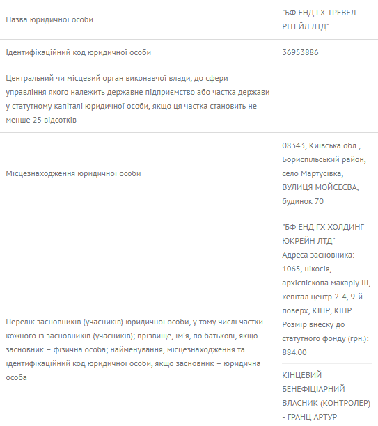 Конечный бенефициарный собственник "БФ энд ГБ Тревел Ритейл" Гранц