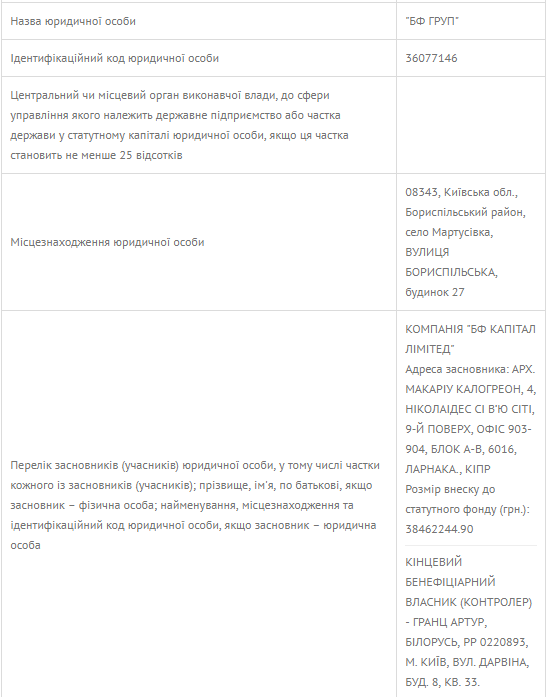 Конечным бенефициарным собственником всех предприятий указан белорусский бизнесмен Артур Гранц, который дружен с Иванчуком.