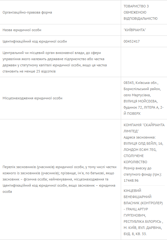 Конечный бенефициарный собственник "КИЕВРИАНТА" Гранц