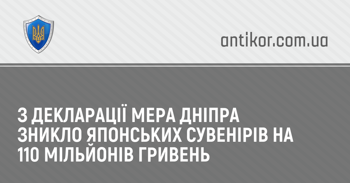 З декларації мера Дніпра зникло японських сувенірів на 110 мільйонів гривень