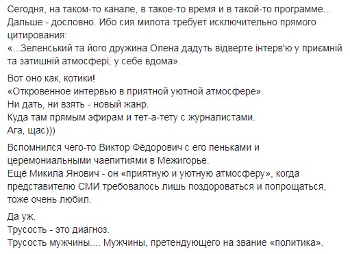 "И вот нынче читаю в официальном телеграмм Зе умильный анонс. Сегодня, на таком-то канале, в такое-то время и в такой-то программе... Дальше - дословно. Ибо сия милота требует исключительно прямого цитирования: