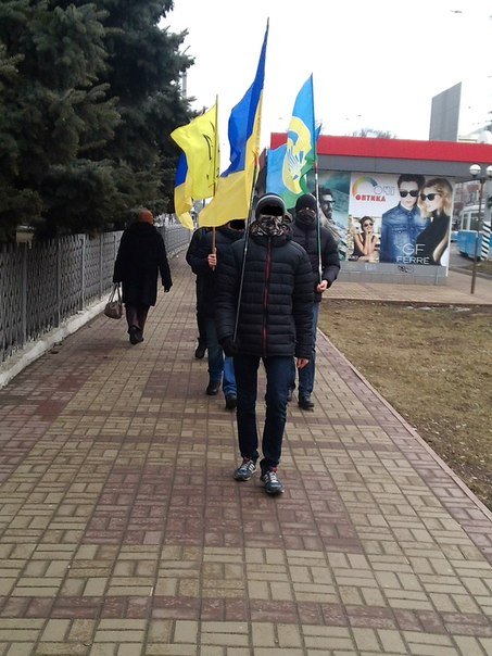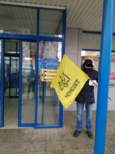 Акцію протесту "НЕ купуй російське! Не сплачуй Волноваху, Маріуполь" під стінами мережі магазинів "АТБ" провів "Союз десантників України" спільно з вінницькою молодіжною організацією "Моноліт".
