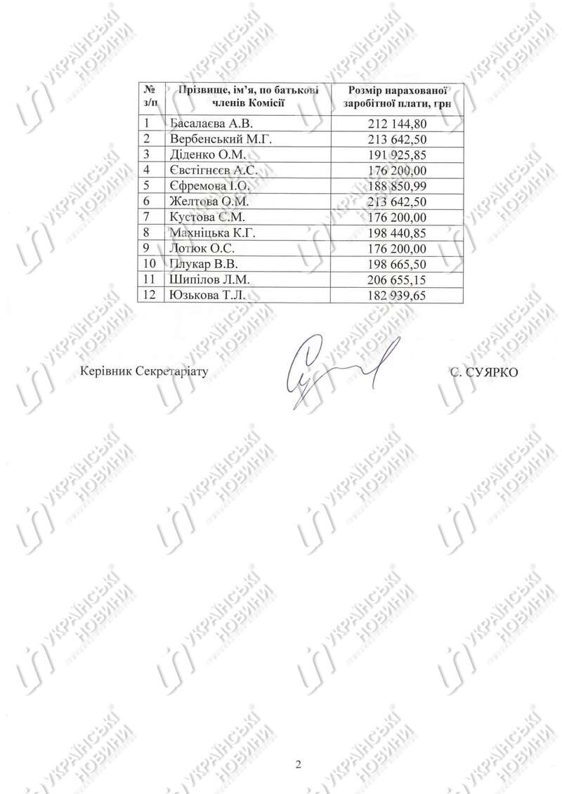 Ее заместители Евгений Радченко и Олег Конопольский заработали по 190,3 гривен. Февральская зарплата секретаря комиссии Натальи Бернацкой составила 186,8 тыс. гривен.