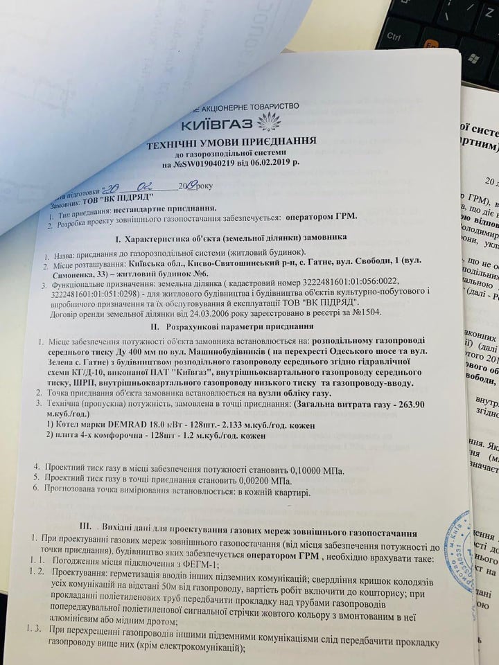 При этом ради прибыли «Киевгаз» готов работать за пределами лицензионной территории. К примеру, как можно увидеть из документов, они выдали ТУ в селе Гатное Киево-Святошинського района Киевской области. Это – другая юрисдикция, но нынешнему руководству «газовиков» это не помеха.