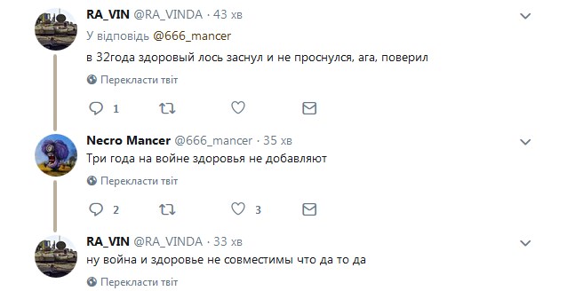 Тем временем в сети отмечают, что война и здоровье несовместимы, а также отмечают, что боевик, бежавший от войны, был "ликвидирован судьбой".