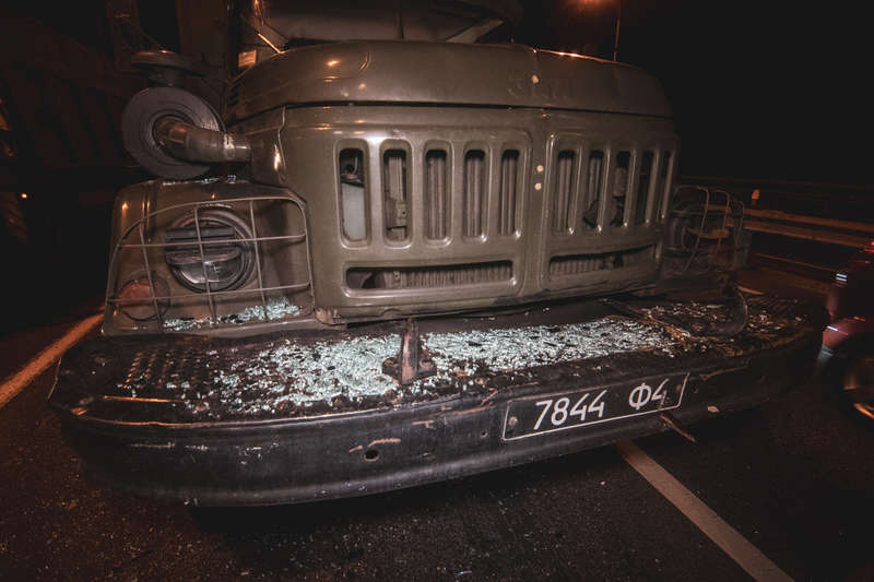 Инцидент произошел около 22:30 на Гаванском мосту. На средней полосе движения столкнулись военный грузовик и автомобиль Chevrolet. По данным очевидцев, грузовая машина влетела в легковушку сзади. По предварительной информации, причиной столкновения стали неисправные тормоза в военном авто.