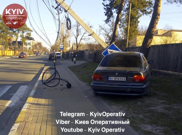 В Ирпене под Киевом водитель-лихач на BMW, пересекая перекресток Соборной и Пушкинской, не справился с управлением и въехал в электроопору.