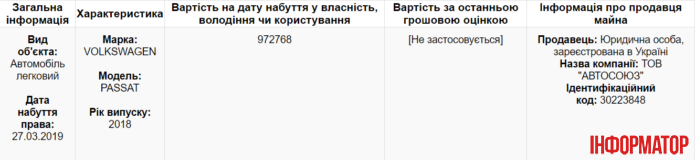 Судячи з декларації Зубрія, в нього вже є два авто.