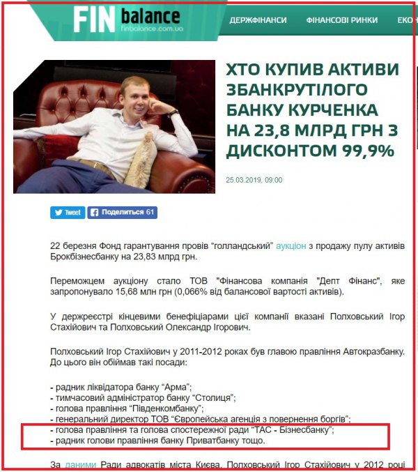 Второе событие – незадолго до вынесения підозр на аукционе Prozorro.Продажі проданы все кредиты "Брокбизнесбанка".