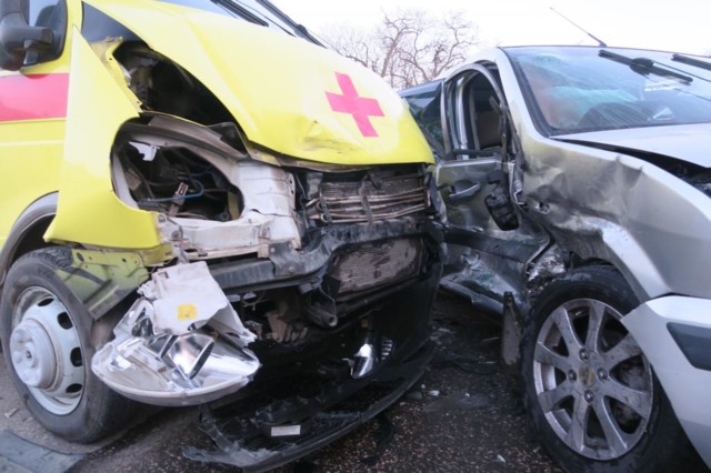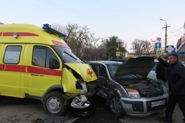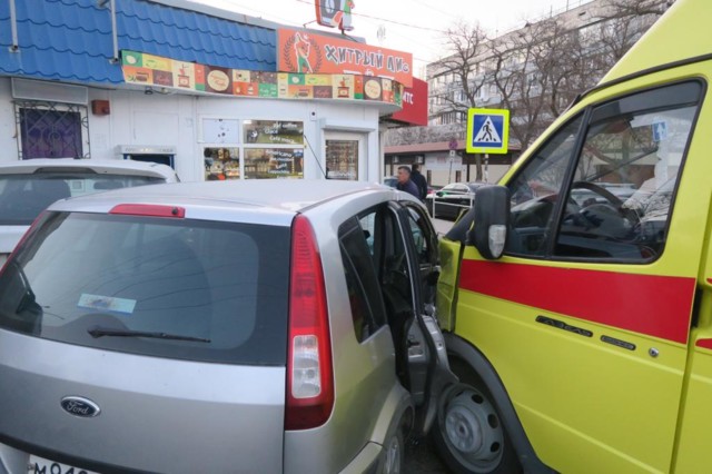 В Феодосии произошло массовое ДТП с машиной скорой помощи, в результате аварии пострадали три человека.