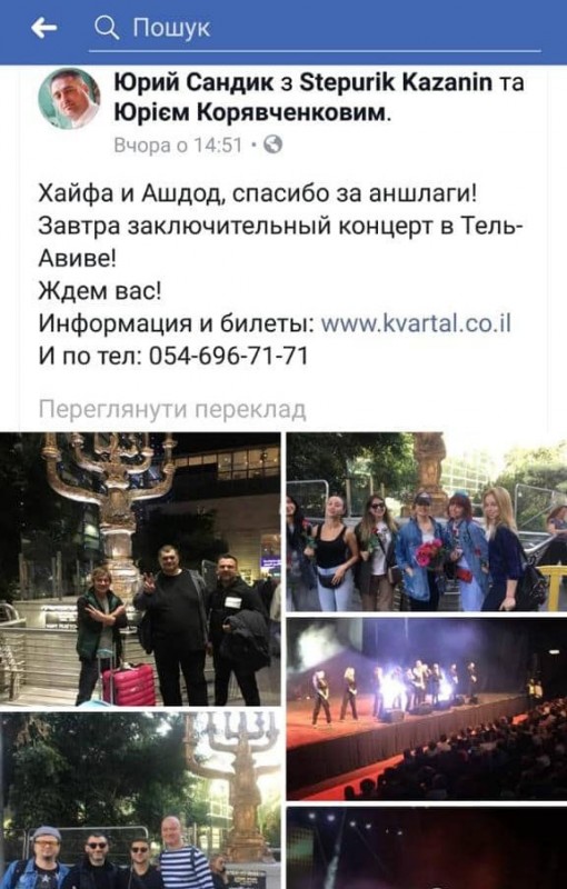 «Прибываю по указанному адресу в Герцлию и… первое впечатление, что меня настиг солнечный удар. Перед глазами – весь актерский состав «Слуги народа», они же фронтмены «Квартал 95». Поскольку подписан на ребят в ФБ – решил проверить. Точно, они с гастролями по Израилю», – добавляет Гайдамацький.