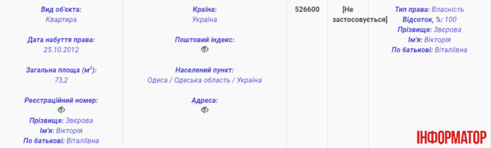 Судячи з декларації за 2018 рік у Звєрової вже є квартира в Одесі вартістю пів мільйона гривень.