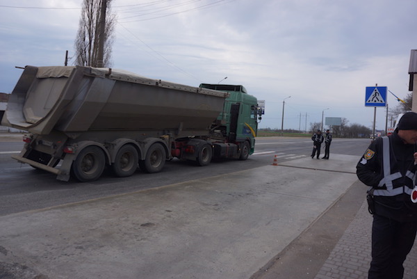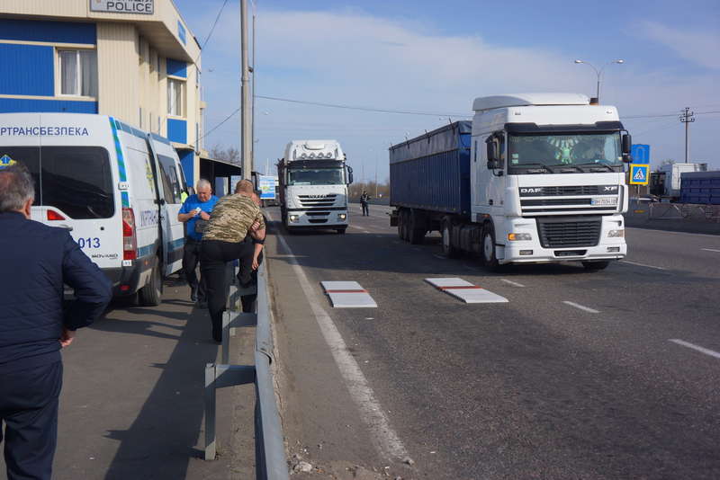 Направление на восток. Весовые комплексы стоят на выезде из Одессы в Николаев, но они не работают, закрыты. Грузовики несутся на огромной скорости мимо постов полиции: