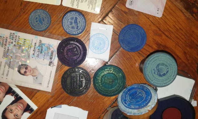При обысках в помещениях фигурантов дела в Киеве и Киевской области обнаружены поддельные печатей и штампов, бланки различных государственных учреждений и министерств и уже изготовленные поддельные документы.