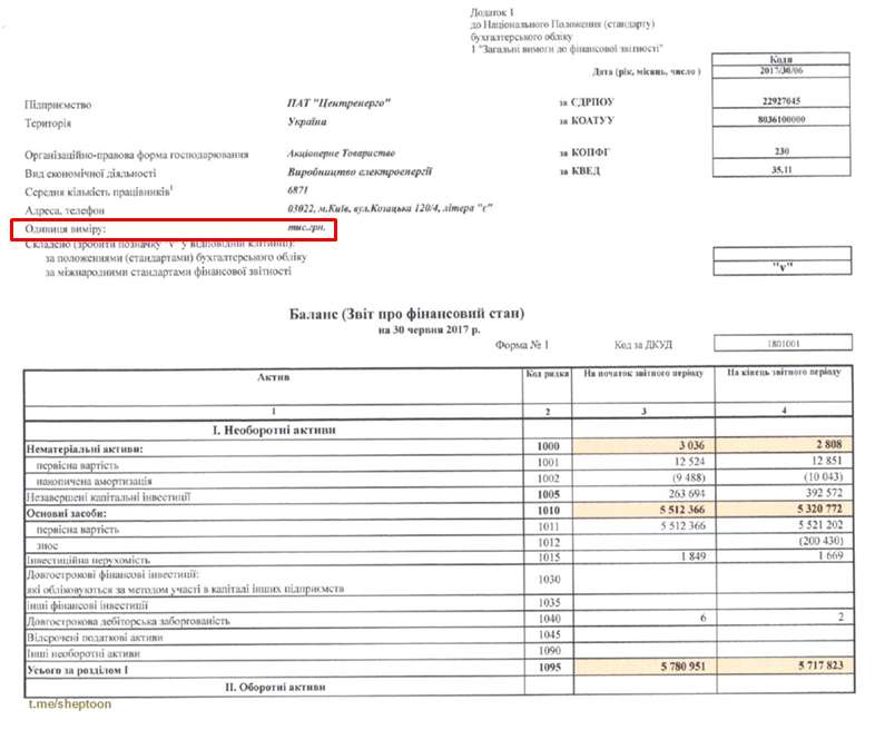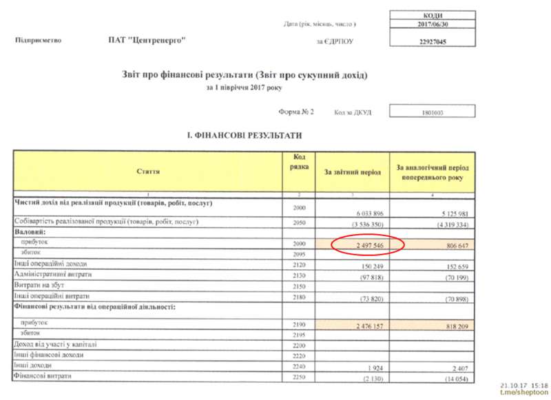Финансовая отчетность «Центренерго», подтверждающая прибыльность предприятия (единица измерения: тыс грн)