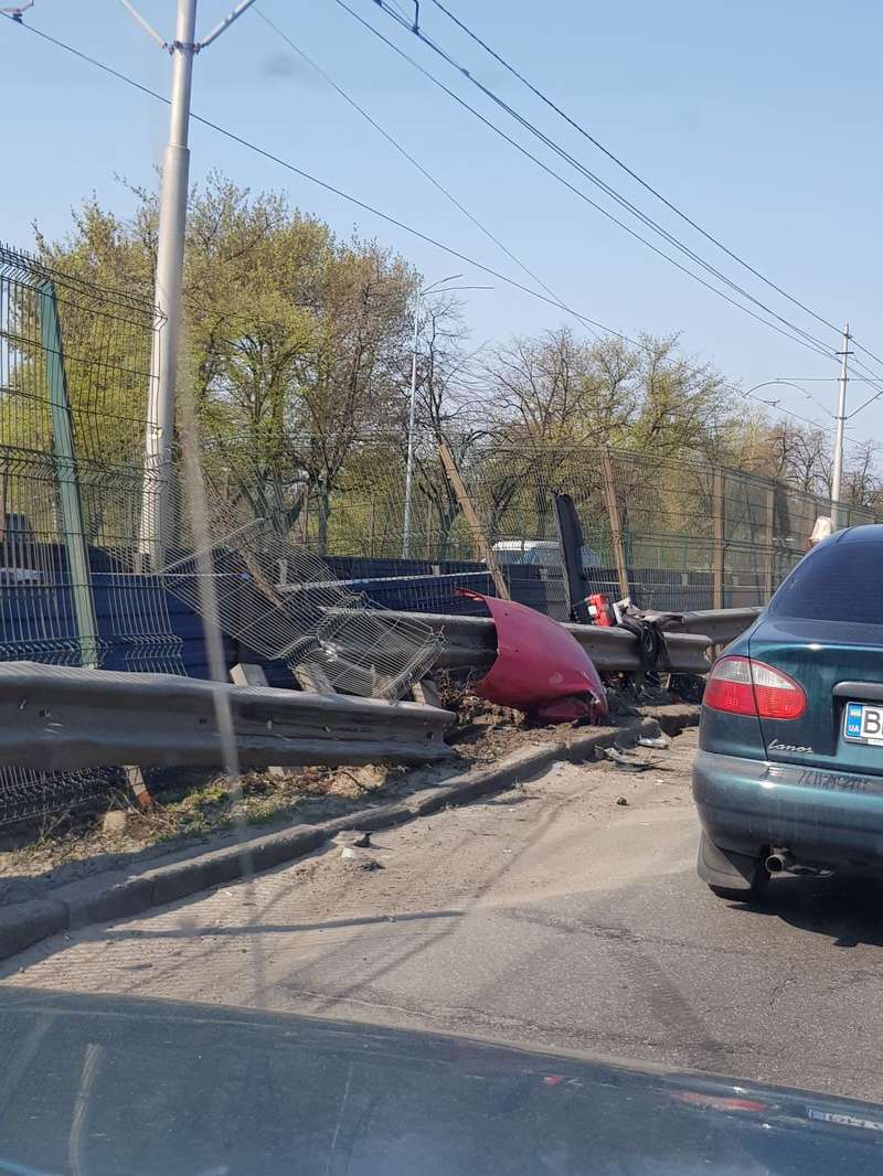 Не исключено, что водитель не справился с управлением и зацепил ограждение, отделяющее трамвайные линии от проезжей части.
