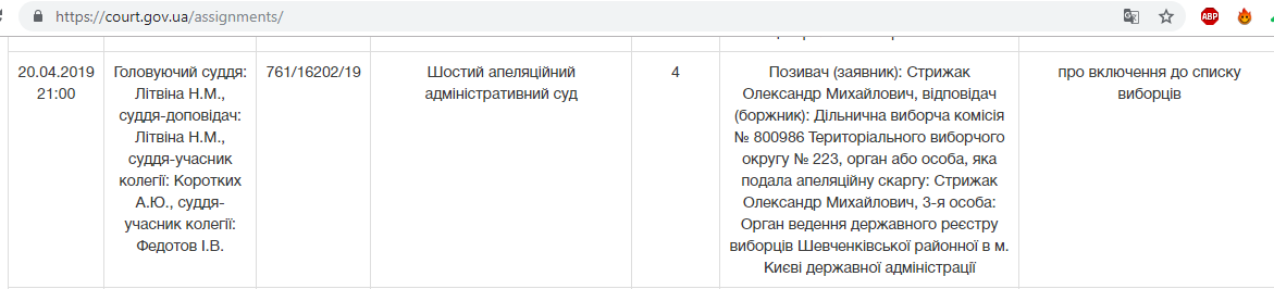 На 20:30 адвокат назначил брифинг, чтобы обсудить предстоящий судебный процесс с прессой. В соответствии с информацией на сайте Судебной власти Украины, дело №855/124/19 о признании нарушений в подкупе избирателей и отмене решения ЦИК № 153 от 30.01.2019 г. о регистрации кандидата Зеленского В.А. действительно будет рассматриваться сегодня, 20 апреля в Шестом апелляционном суде.