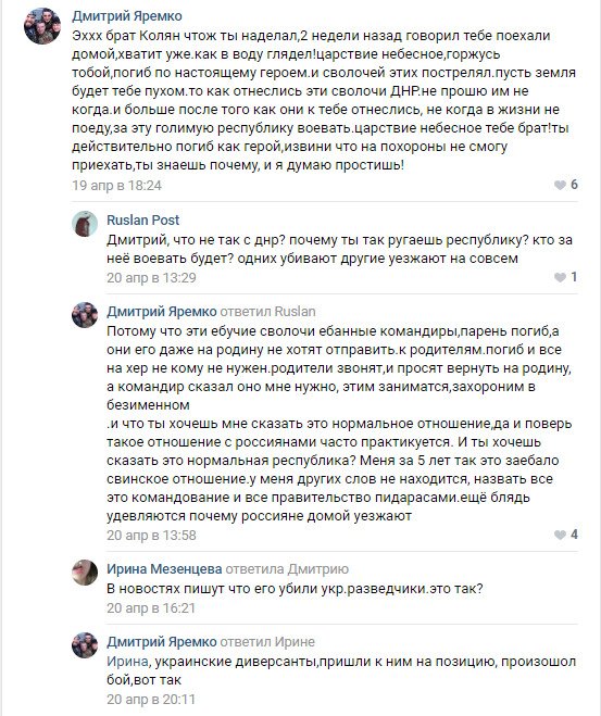 Журналист также показал фрагмент переписки в социальных сетях под фотографией уничтоженного российского наемника Николая Шелуха, являющегося уроженцем российского города Юрга. Его похоронили 23 апреля в Ханты-Мансийске.