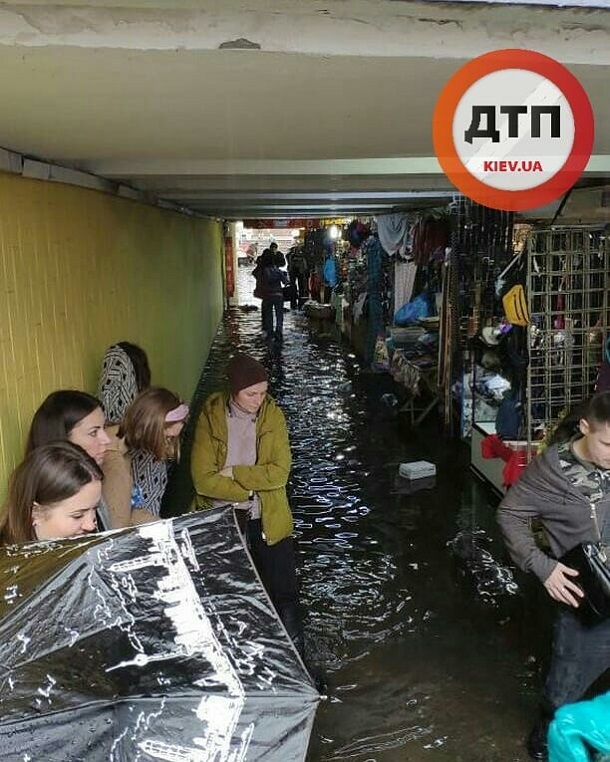 В Киеве после дождя затопило дороги, и даже подземный переход в метро. Соответствующие фото опубликовал dtp.kiev.ua в Telegram.