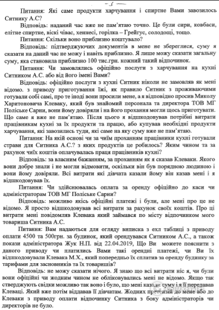 Отмечается, что Надейко оплачивает отдых Сытнику безвозмездно, из дружеских побуждений. По его словам, за период с 2017 по 2019 годы Сытник отдохнул в угодьях 5 раз. За каждый уикенд было заплачено в среднем около 100 тыс. гривен. На стол подавали колбасы, сыры, сладости, элитный алкоголь – коньяк Hennessy, виски Chivas Regal, водку Grey Goose.