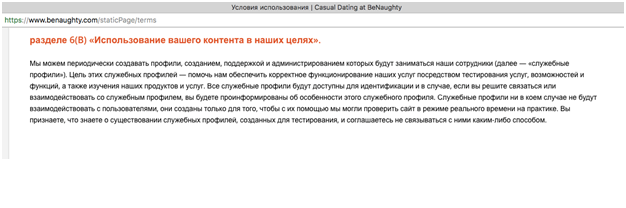 Суть цього пункту «договору» проста – отримати можливість використовувати імена та фотографії для реєстрації профайлів-ботів на інших сайтах дейтингової імперії та спілкуватися з новими користувачами. Фактично, такі дії Полякова кримінально-карні і підпадають під категорію заволодіння особистою інформацією шляхом надмірної довіри та обману. Рятує Полякова лише договір публічної оферти.
