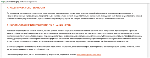 Цікаво, що юристи Полякова досягли не лише згоди користувачів стати жертвами шахрайства, але й отримали можливість безкарно використовувати особисту інформацію любителів знайомитися онлайн у своїх цілях. Про це говориться в умовах використання сайтів: адміністрація сайту може використовувати інформацію користувача, включаючи фотографії, у своїх цілях: передавати стороннім компаніям, партнерам і використовувати в рекламі.