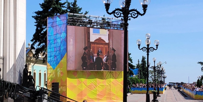 Зеленский все время улыбался. Ему кричали “Слава Украине” и “Зеленский”.