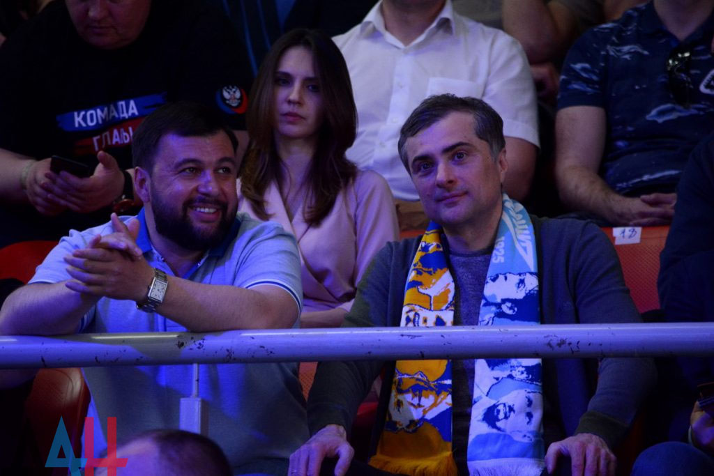 Помощник президента РФ Владислав Сурков посетил в Ростове-на-Дону турнир по смешанным единоборствам (ММА), где встретился с главарем боевиков «ДНР» Денисом Пушилиным.