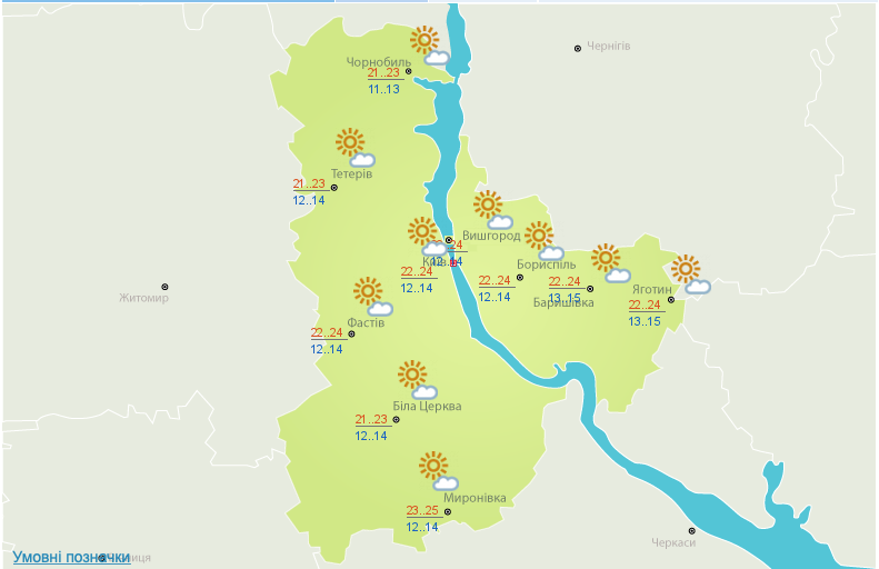 В столице Украины 26 мая будет облачно. Воздух прогреется от +22 до +24, ночью от +12 до +14, ветер северо-западный, 5-10 м/сек.