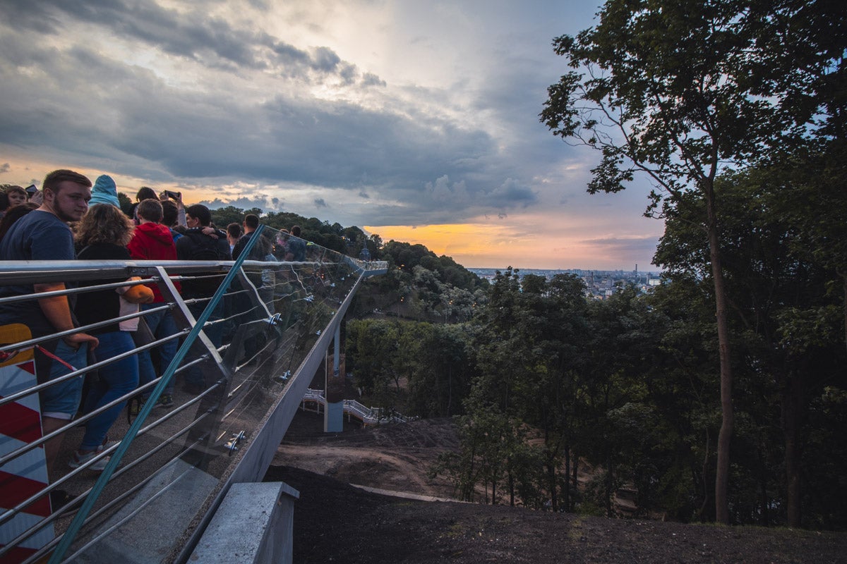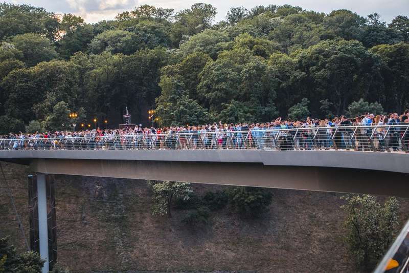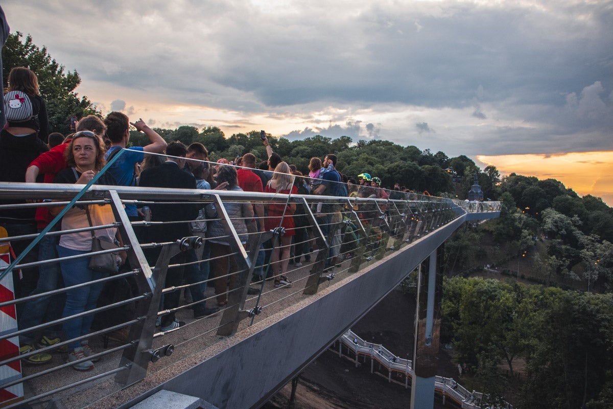 В Киеве состоялось торжественное открытие пешеходно-велосипедного «моста Кличко», который соединяет два холма фактически в центре столицы: Владимирскую горку и Крещатый парк.