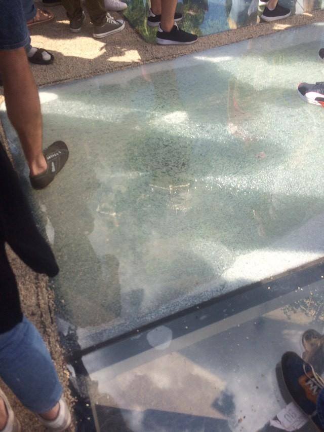 Сьогодні, 27 травня, на «скляному» мосту, урочисте відкриття якого відбулося кілька днів тому, під час заміни пошкодженого скла сталася аварія.