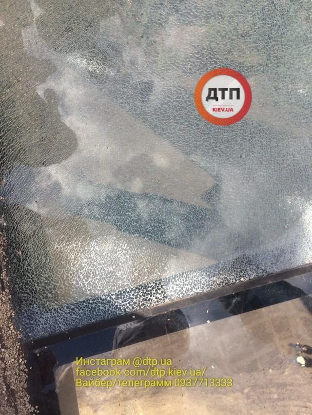 Як повідомляє Київ оперативний у Facebook, під час заміни побитого скла тріснуло ще одне.