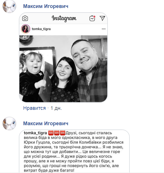 "Мои проезжали там. Ребеночек был еще жив. Боже, как это страшно!" – написала в Facebook Татьяна Кравчук.